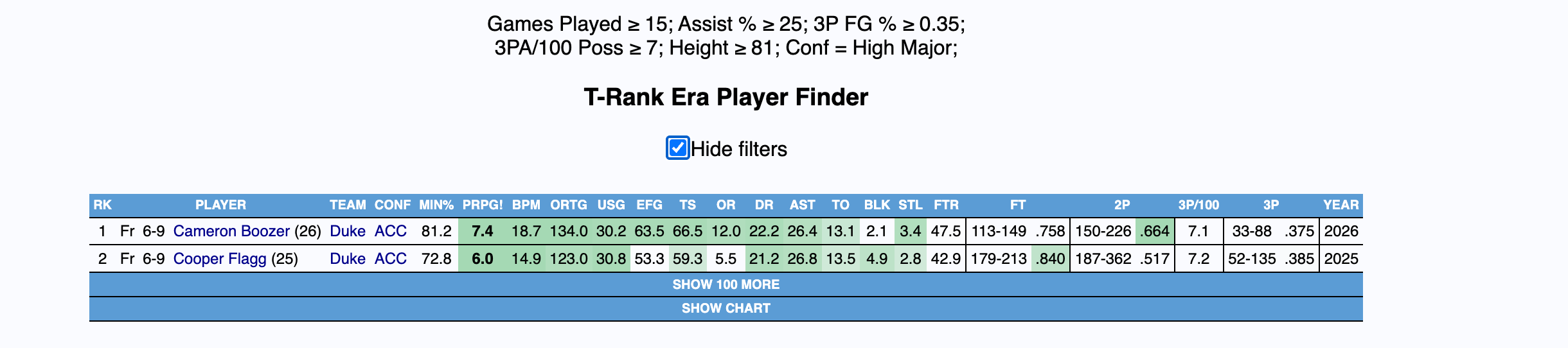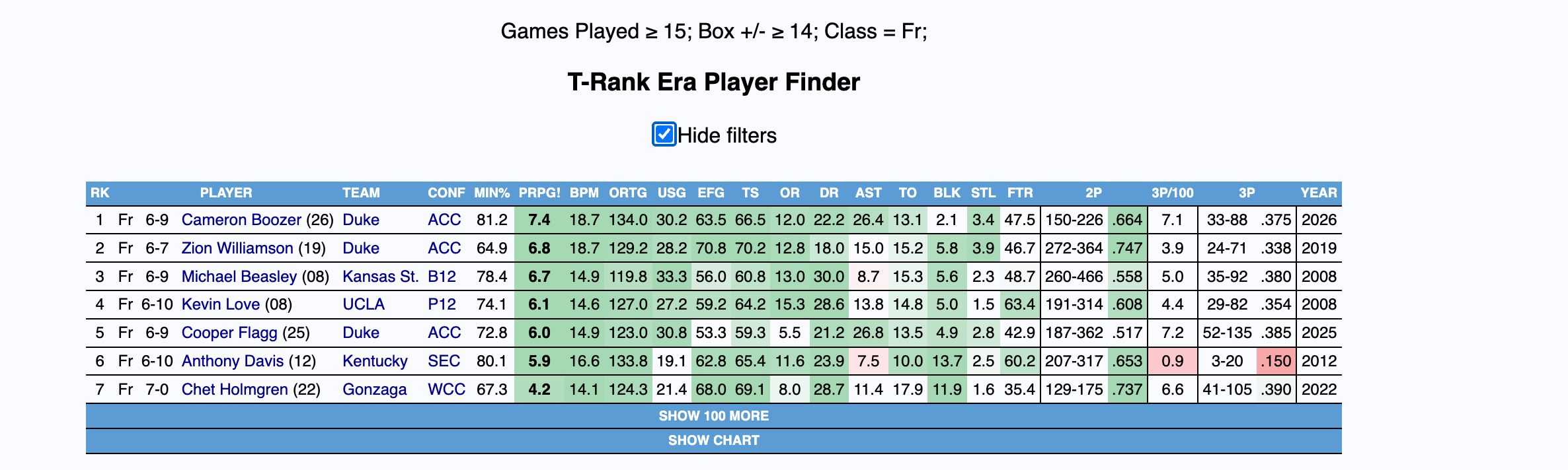 I believe that to be both untrue and a misunderstanding of what age-adjusted college performance says about NBA translation. Simply put, players this young who dominate much older players have an extremely high hit rate of becoming not only good NBA players but, more likely than not, all-star level players. Being the best player in the country before your 19th birthday is not the norm, but it is a significant indicator of future stardom.