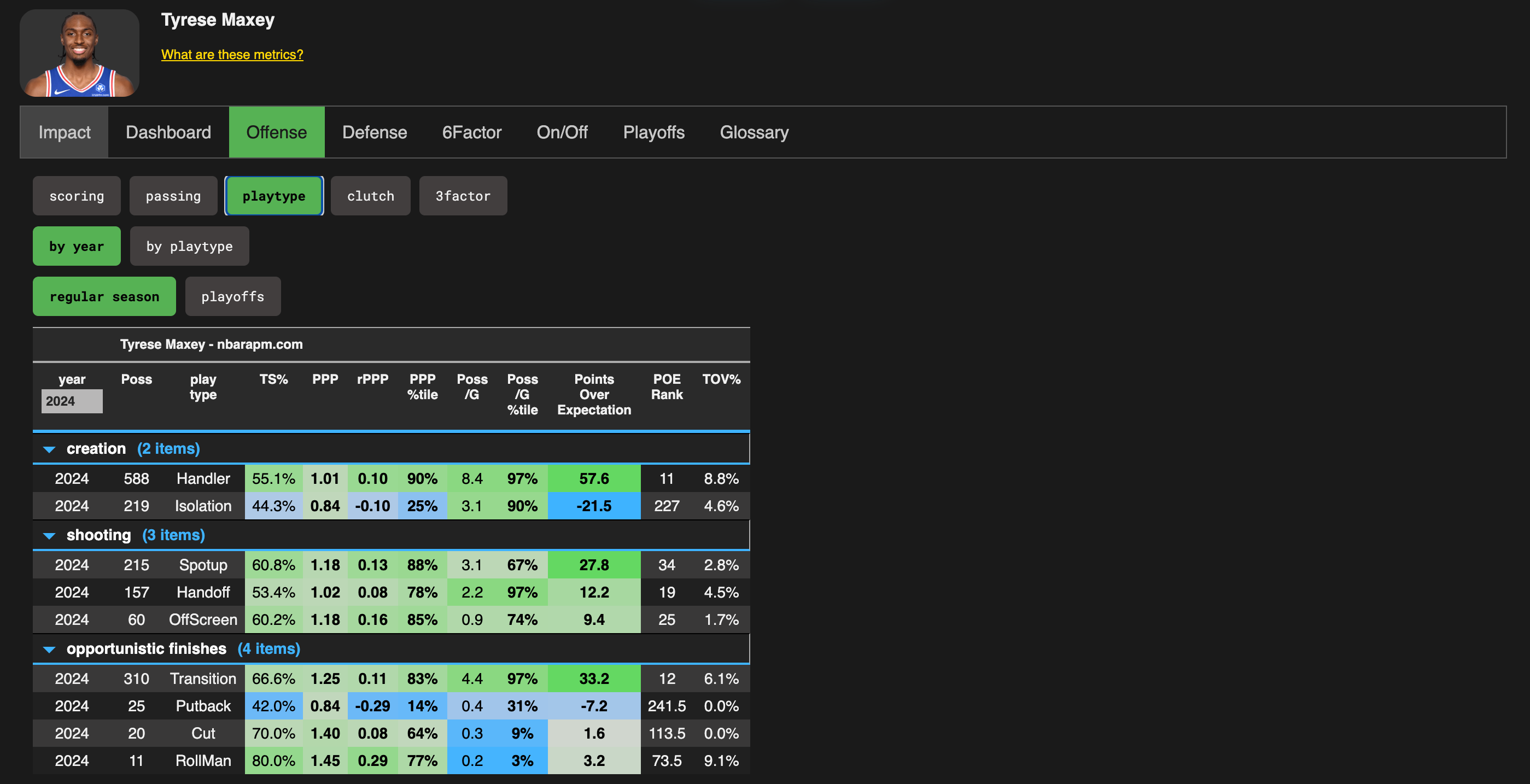 In the chart below, you’ll notice that players such as Donovan Mitchell, Stephen Curry, Jalen Brunson, and Tyrese Maxey — a few of the best offensive players in the world — sit at the intersection of playing time and impact.