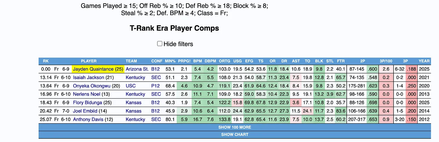 I think Quaintance can do similar things for the Wildcats. They’re already an elite defense (24th in defensive efficiency and 95th percentile defensive rating), but the sophomore big man could transform the Blue Blood into the best unit in the nation.