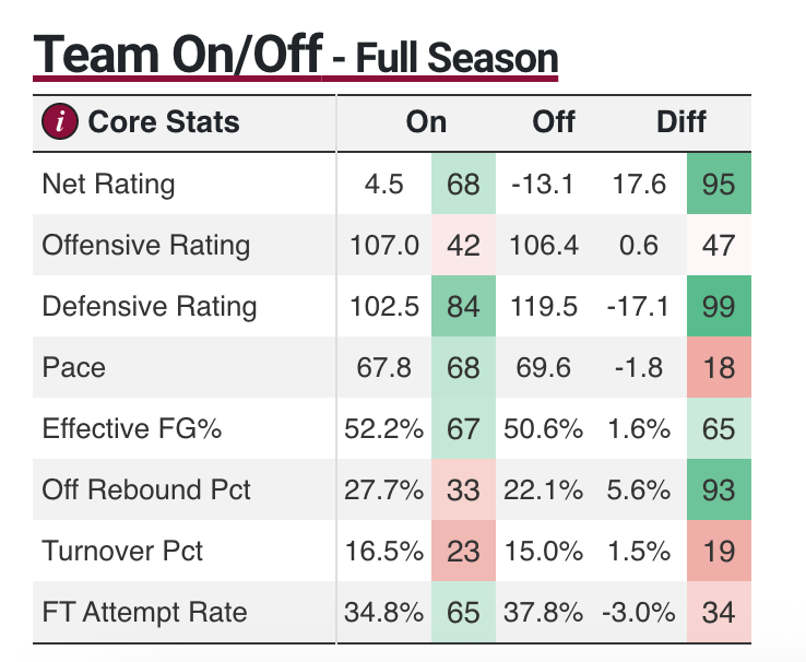 Last year, he transformed one of the worst defenses in the country into a top 50 unit with him on the floor.