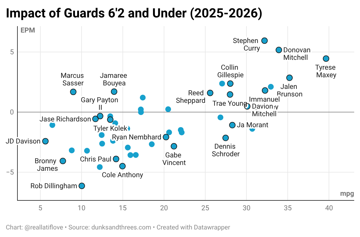 You’ll also notice that the vast majority of guards under 6’2 fall below a neutral estimated plus-minus (EPM).